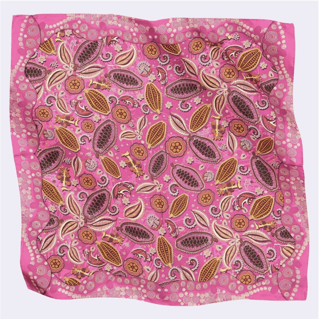 Pineda Covalin remains a reference point. Known for silk scarves and accessories inspired by Latin American mythology, architecture, and art, the brand turns history into something wearable and alive.