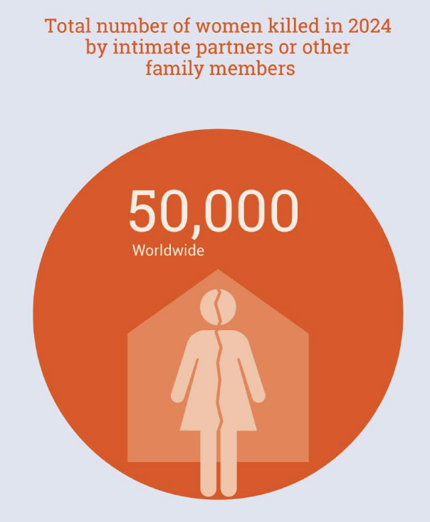 According to the UN report, 60 percent of all intentional killings of women and girls in 2024 happened inside the home. The report estimates 50,000 victims globally, out of 83,000 intentional killings of women and girls that year.