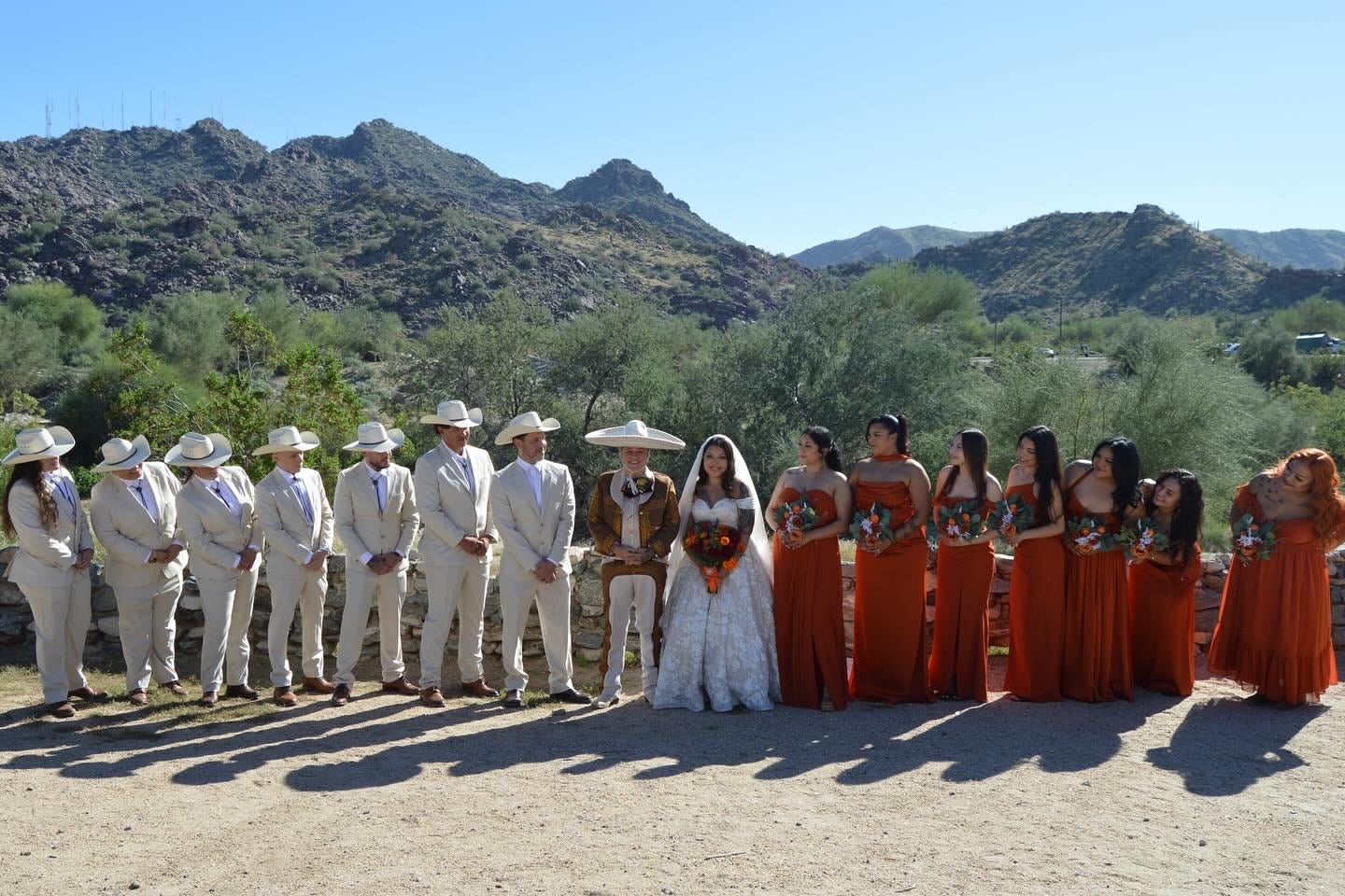 So she built a ritual out of shyness. “I used my charro sombrero to hide our kisses in a cute, shy way during photos and special moments. It became our little workaround, very us.”