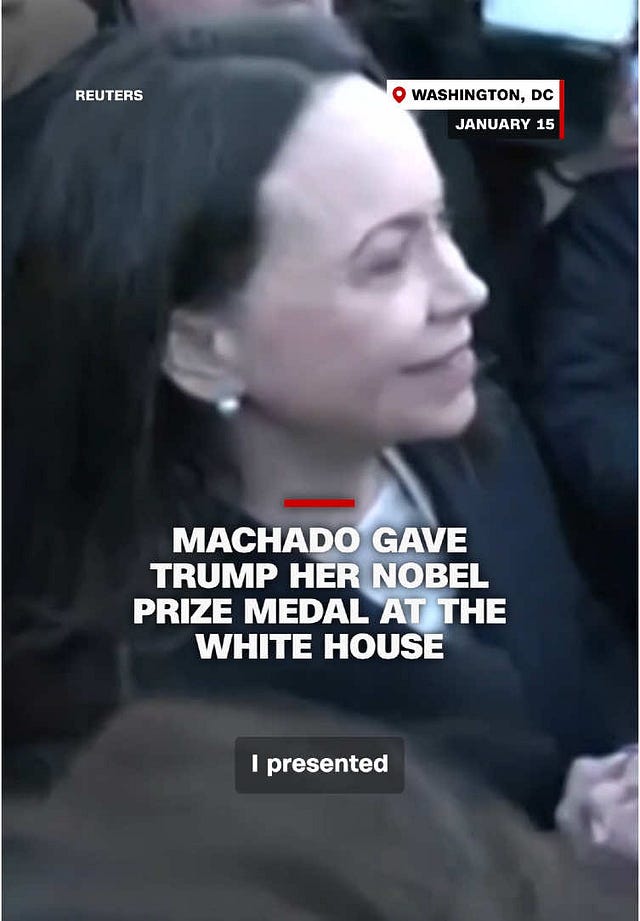 According to the Associated Press, Maria Corina Machado met privately with Trump at the White House on Jan. 15. Afterward, she told reporters: "I presented the president of the United States the medal, the Nobel Peace Prize."